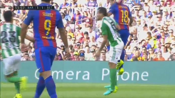 33:31 Free-kick for foul Alba (Barcelona) on Petros (Betis)