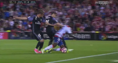 85:04 Free-kick for possible fouls Coentrao (Real Madrid) and Morata (Real Madrid) on Agbo (Granada)